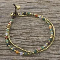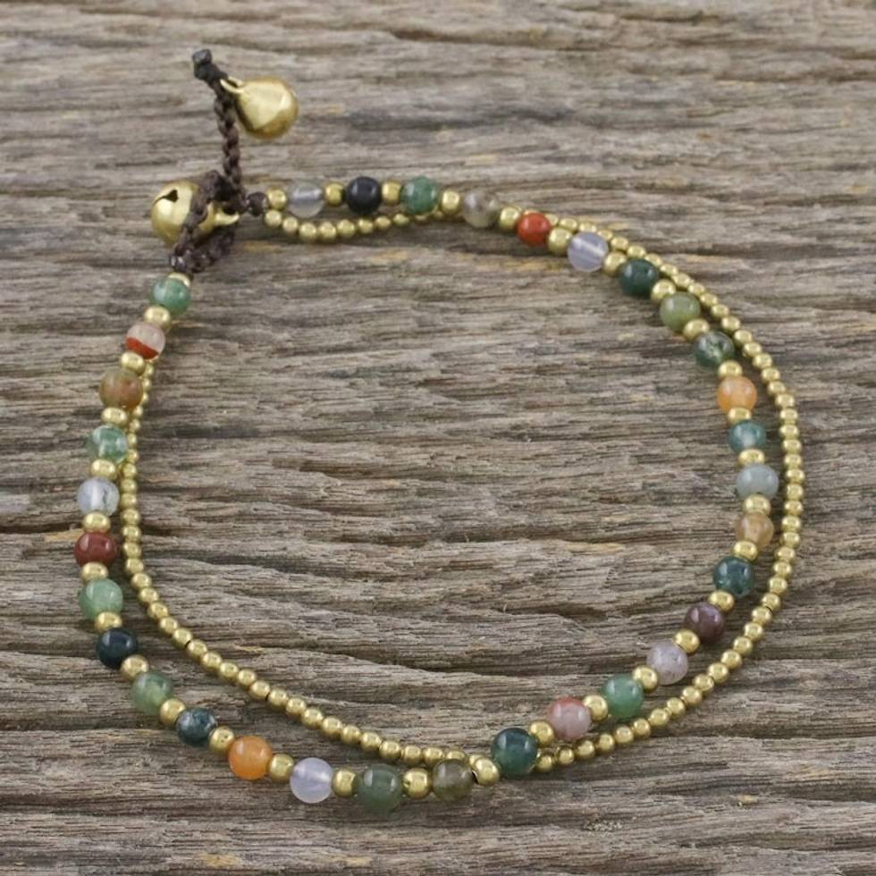 Handmade Multi-Color Agate Brass Beaded Anklet with Loop 'Valley of Color' Item ID: 2669928617