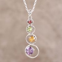 Handmade Multi-Gemstone Pendant Necklace from India 'Rainbow Palette' Item ID: 2671790215
