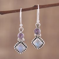 Handmade Multi-Gemstone Sterling Silver Dangle Earrings 'Enchanting Duo' Item ID: 2671619351