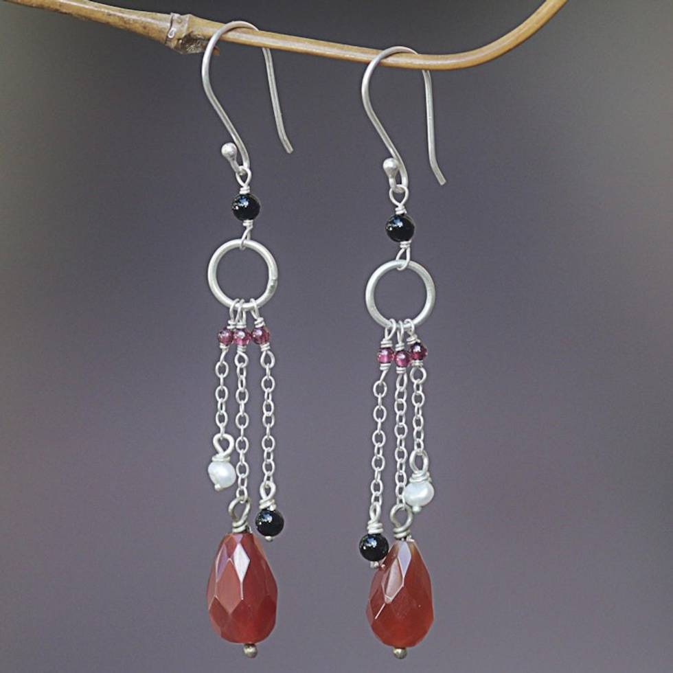 Handmade Multi-Gemstone Sterling Silver Waterfall Earrings 'Jeweled Drizzle' Item ID: 2671820828