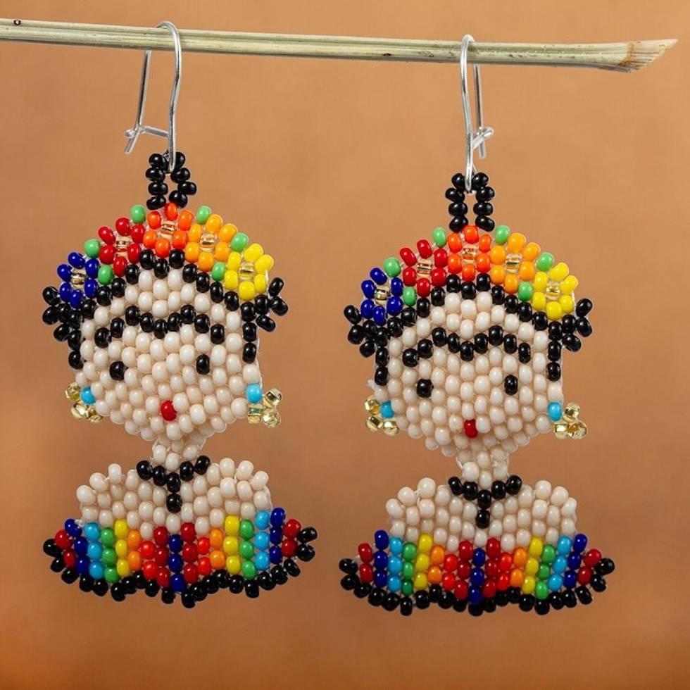 Handmade Multicolored Beaded Frida Earrings 'Rainbow Frida' Item ID: 2669939327