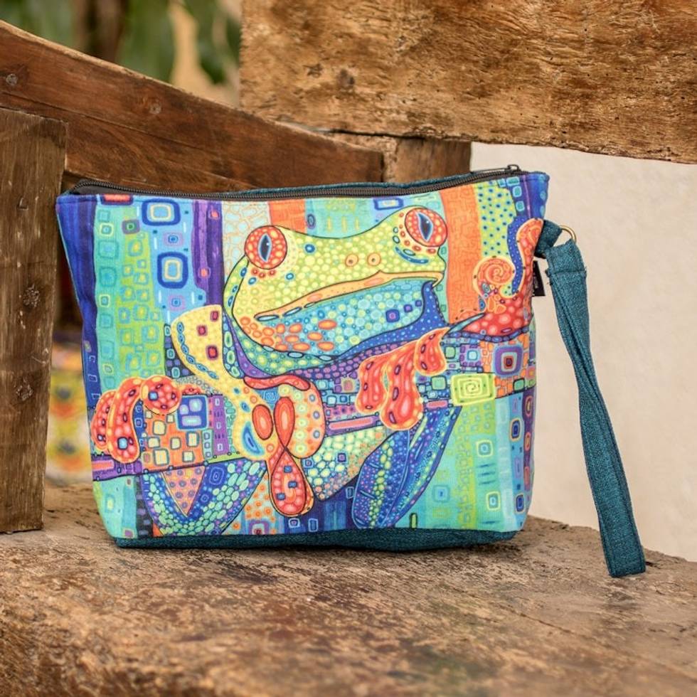 Handmade Multicolored Wristlet Bag with a Frog Motif 'Wild Fauna' Item ID: 2671772454