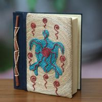 Handmade Natural Fiber Blank 50-pg Journal with Turtle Motif 'Blue Turtle' Item ID: 2670798216