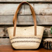 Handmade Natural Fiber Shoulder Bag with Brown Stripes 'Sun Evening' Item ID: 2671769270