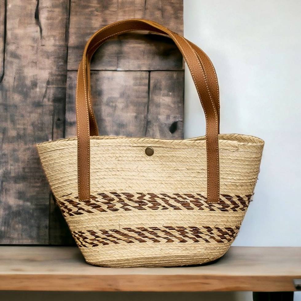 Handmade Natural Fiber Shoulder Bag with Sharp Brown Accents 'Sun Summer' Item ID: 2671770219