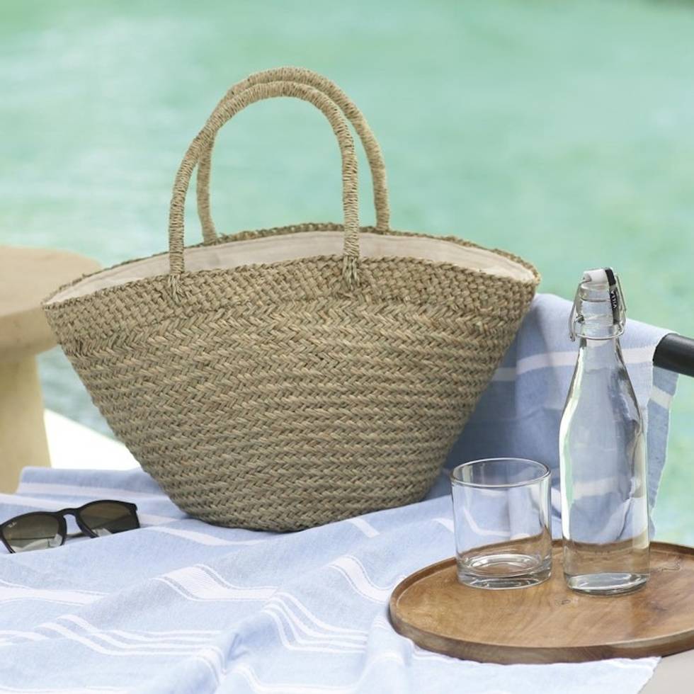 Handmade Natural Fiber Tote Handbag from Bali 'Natural Style' Item ID: 2671737068