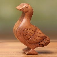 Handmade Natural Wood Puzzle Box 'Javanese Duck' Item ID: 2671478236