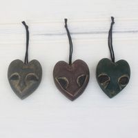 Handmade Ofram Wood Holiday Ornaments Set of 3 'Heart Mask' Item ID: 2671806331