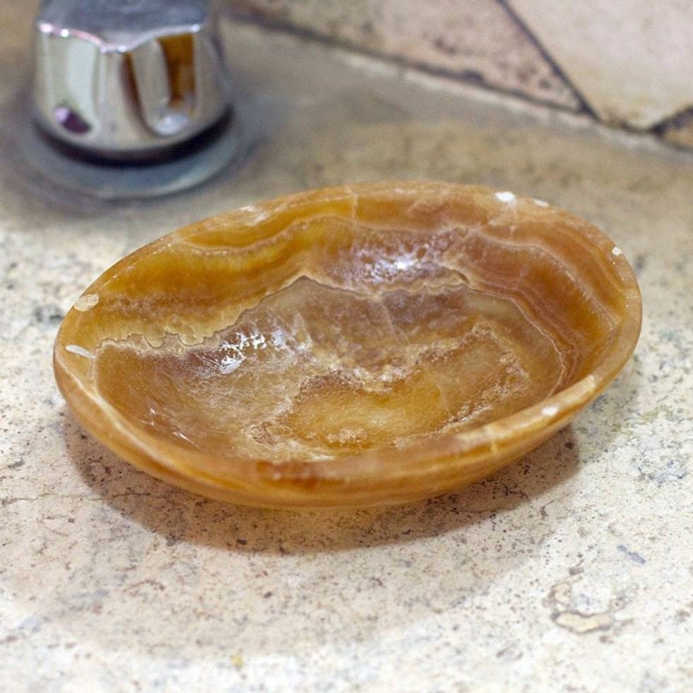 Handmade Onyx Decorative Bowl with Brown Lines from Mexico 'Brown Layers' Item ID: 2671809114