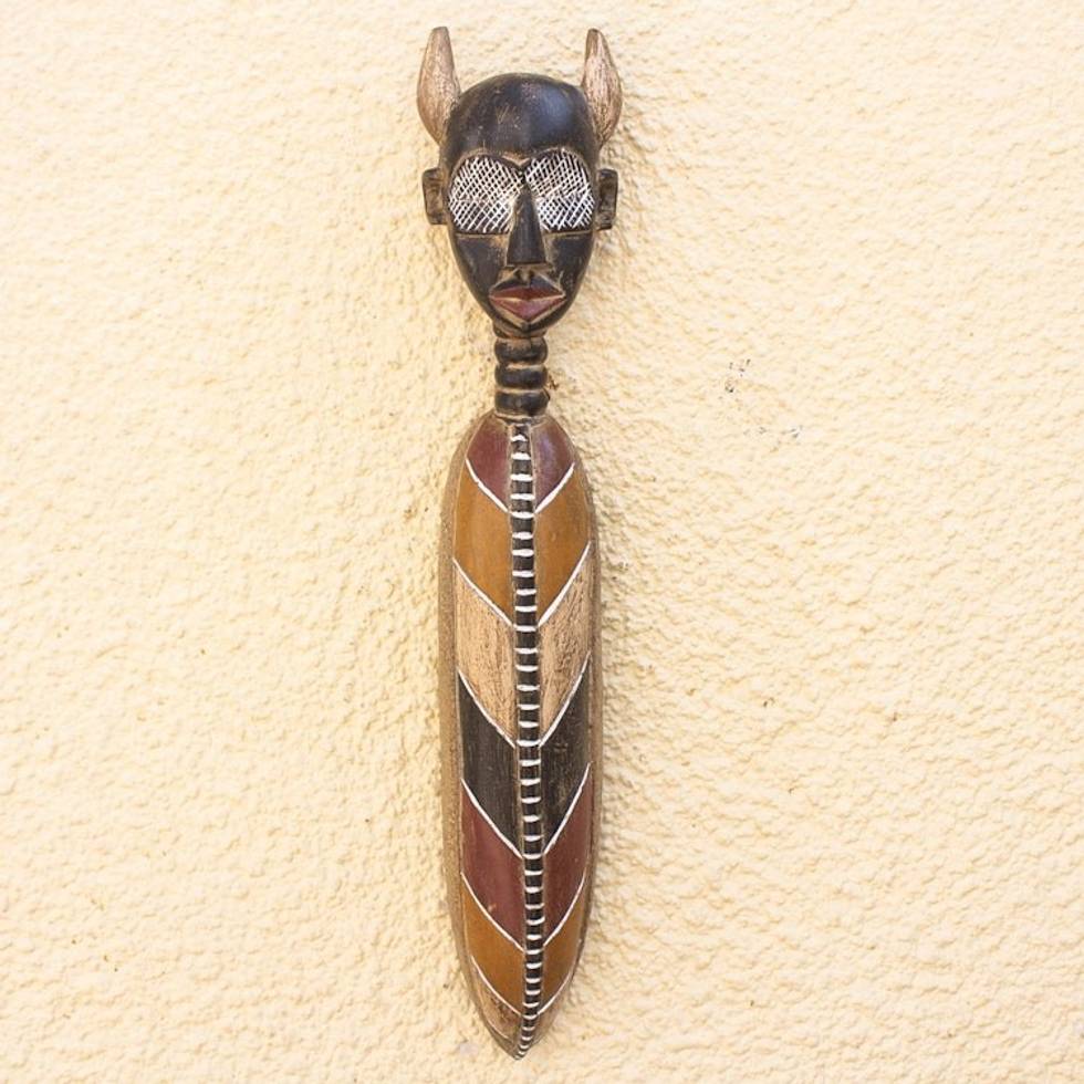 Handmade Painted African Wood Mask with Horns from Ghana 'Aklonto' Item ID: 2671806495