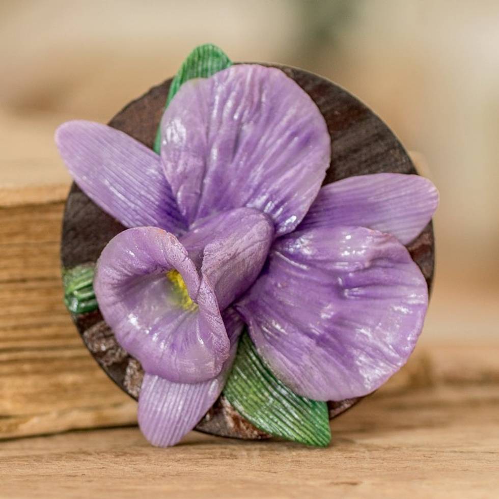 Handmade Painted Pinewood and Cold Porcelain Flower Magnet 'The Tropical Guaria' Item ID: 2671771526