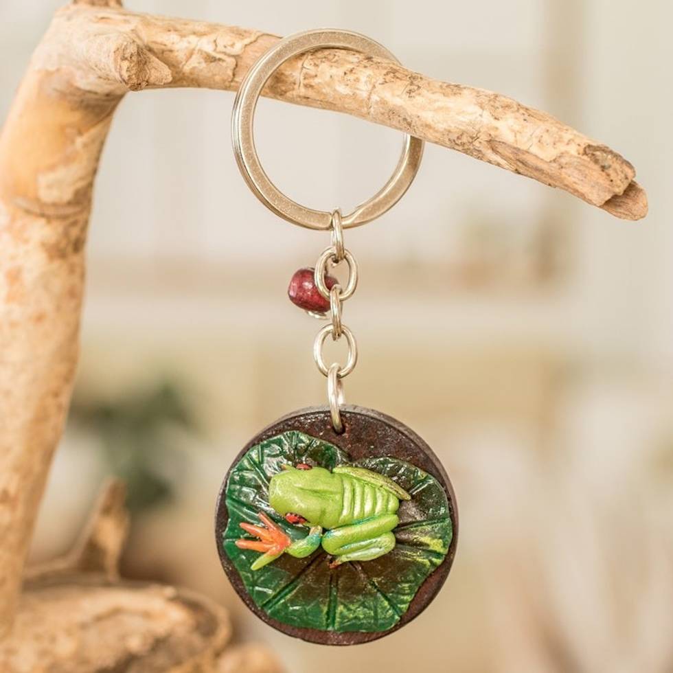 Handmade Painted Pinewood and Cold Porcelain Frog Keychain 'The Little Frog' Item ID: 2671771346
