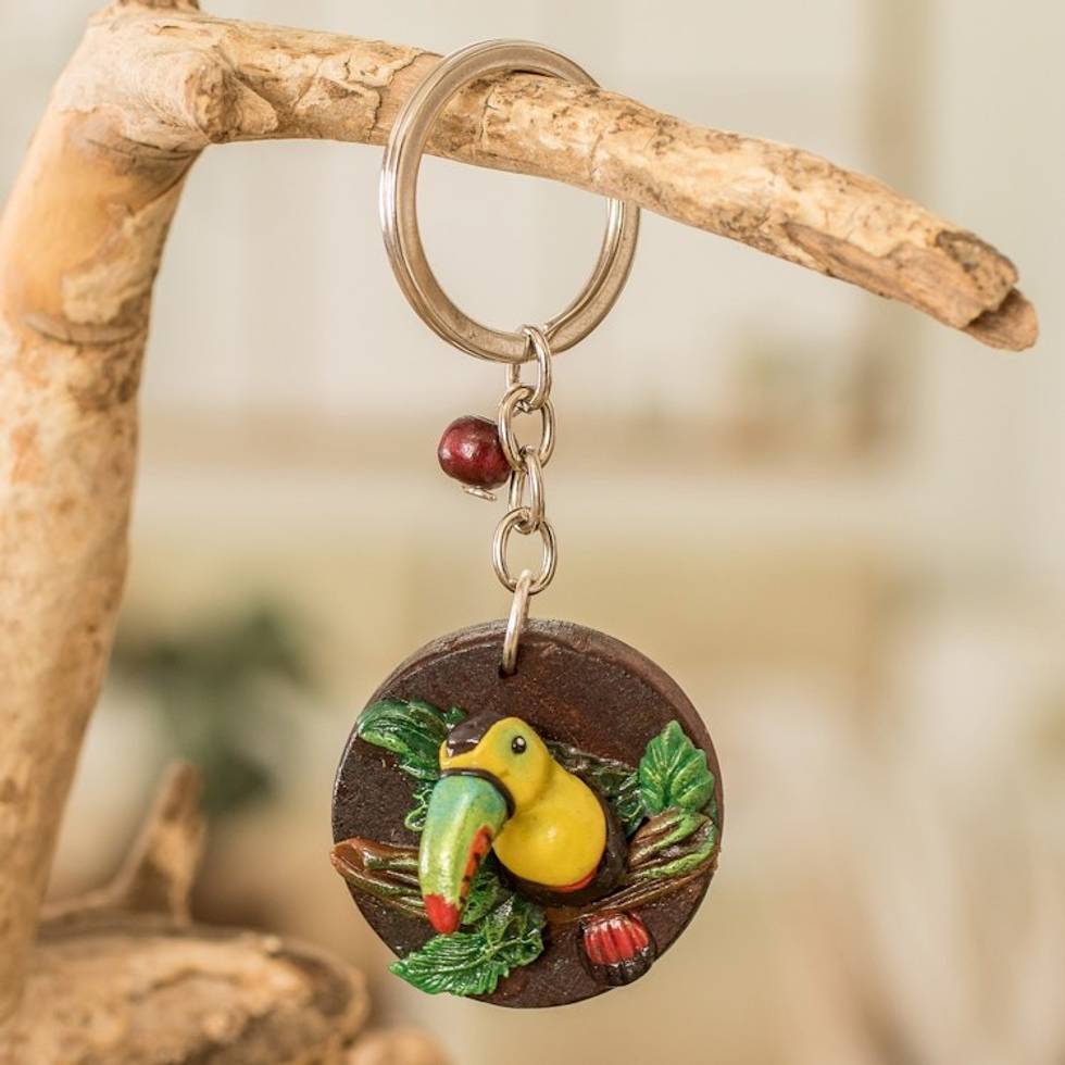 Handmade Painted Pinewood and Cold Porcelain Toucan Keychain 'The Little Toucan' Item ID: 2671771449