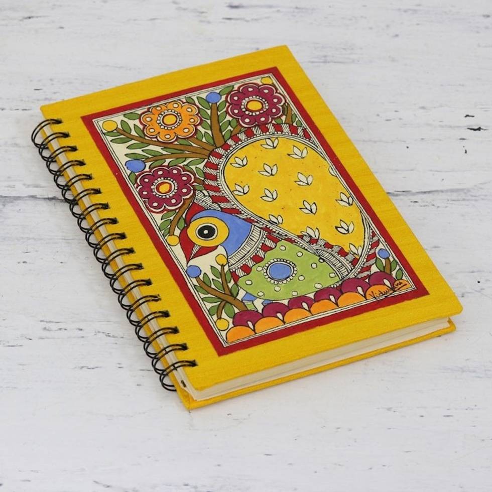 Handmade Paper Spiral Bound Peacock Journal from India 'Swaying Peacock' Item ID: 2671790950
