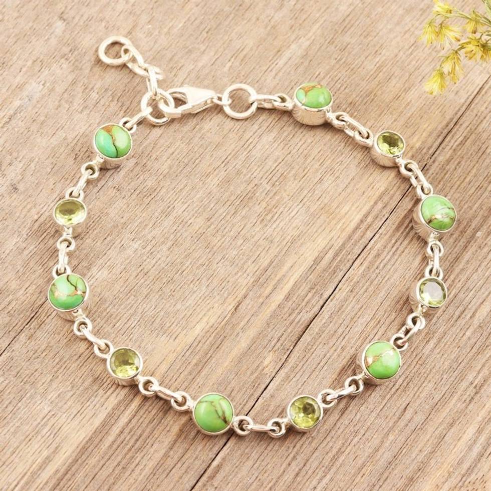 Handmade Peridot and Composite Turquoise Link Bracelet 'Ravishing Beauty in Green' Item ID: 2671789394