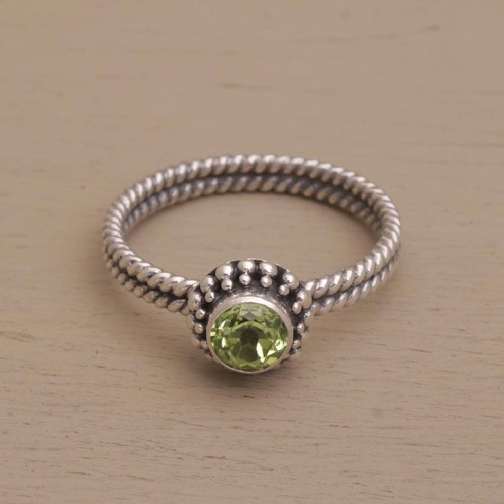 Handmade Peridot and Sterling Silver Single Stone Ring 'Touch of Simplicity' Item ID: 2669919833