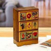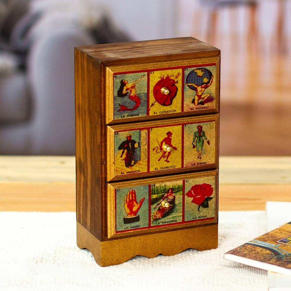 Handmade Pine Wood Decoupage Loteria Jewelry Box from Mexico 'Loteria of Secrets' Item ID: 2671640416