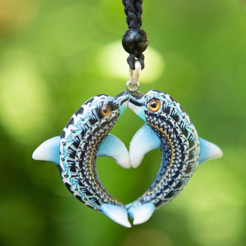 Handmade Polymer Clay Dolphin Pendant Necklace Indonesia 'Dolphin Twins' Item ID: 2671733996