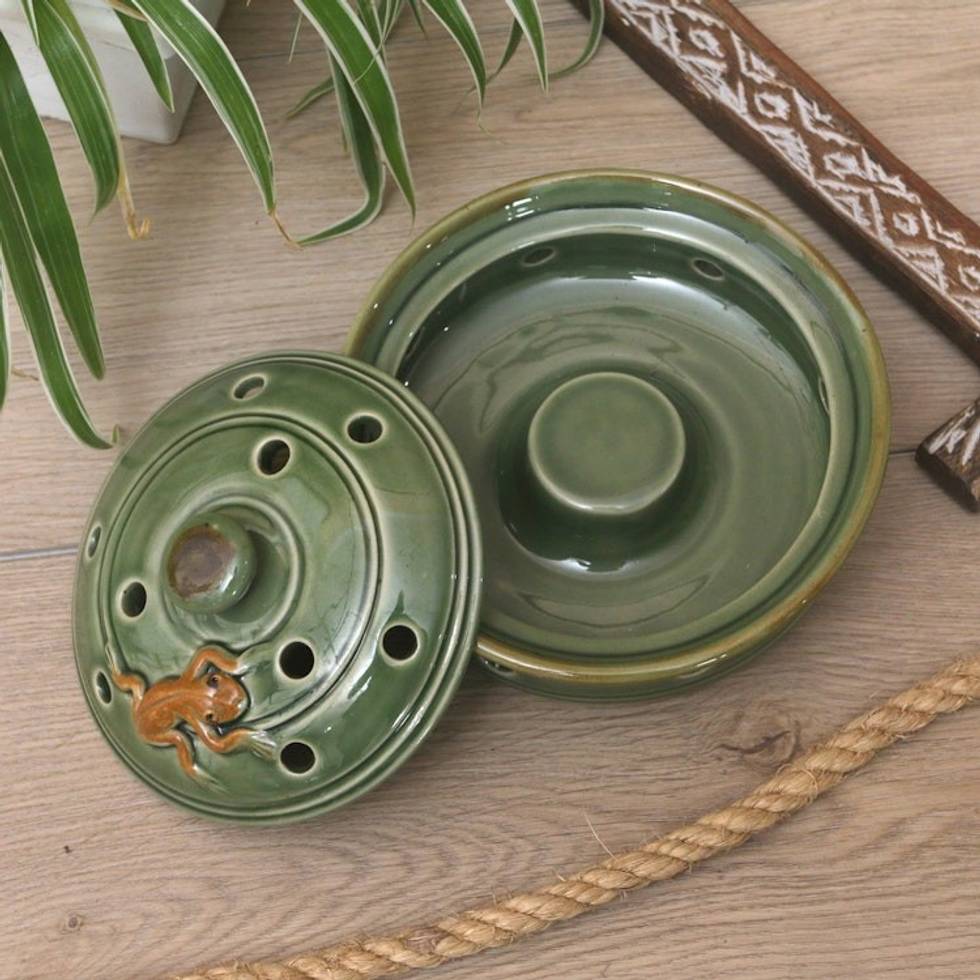 Handmade Porcelain Mosquito Coil Holder with Frog Motif 'Frog with Polka Dots' Item ID: 2671763174