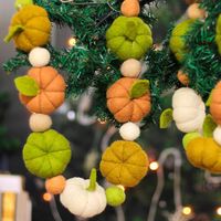 Handmade Pumpkin-Themed Green and Orange Wool Felt Garland 'Forest Pumpkins' Item ID: 2671786985