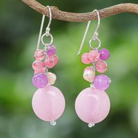 Handmade Purple and Pink Quartz and Pearl Cluster Earrings 'Sweet Thai Joy' Item ID: 2671801060