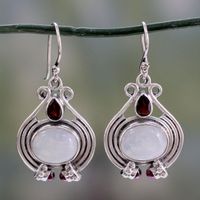 Handmade Rainbow Moonstone and Garnet Earrings 'Mysterious Mist' Item ID: 2669924383