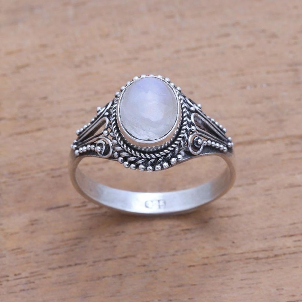 Handmade Rainbow Moonstone Single-Stone Ring from Bali 'Princess Gem' Item ID: 2669994208