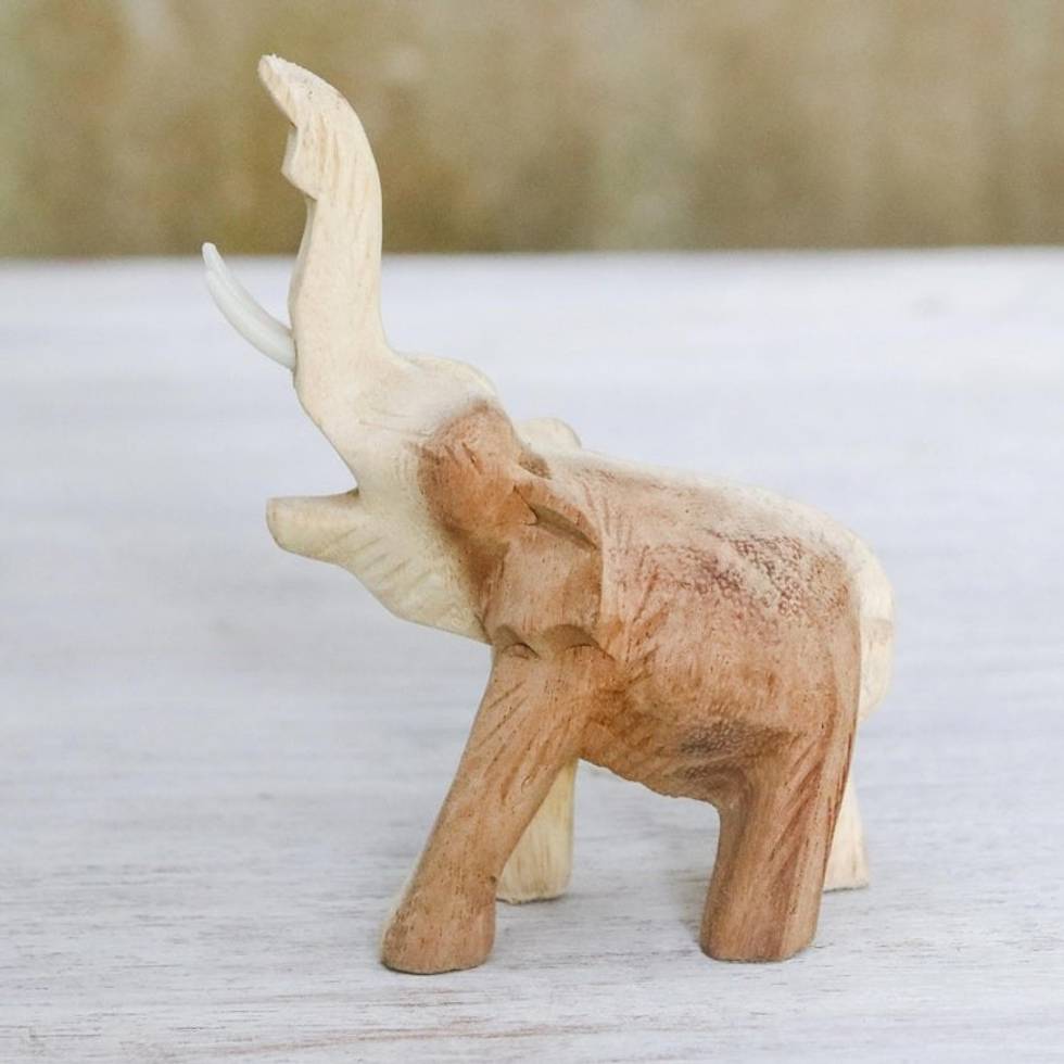 Handmade Raintree Wood Elephant Figurine from Thailand 'Wild Life' Item ID: 2671800746