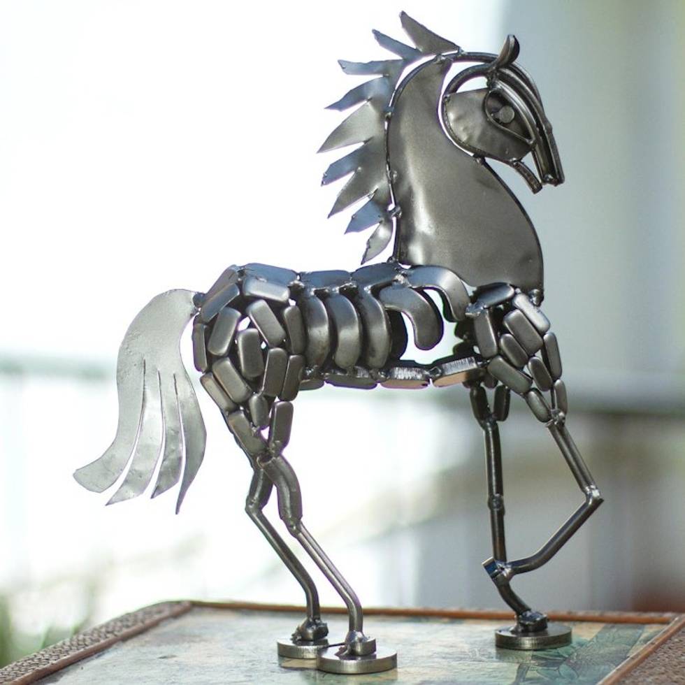 Handmade Recycled Auto Parts Horse Sculpture 'Metallic Horse' Item ID: 2669898064