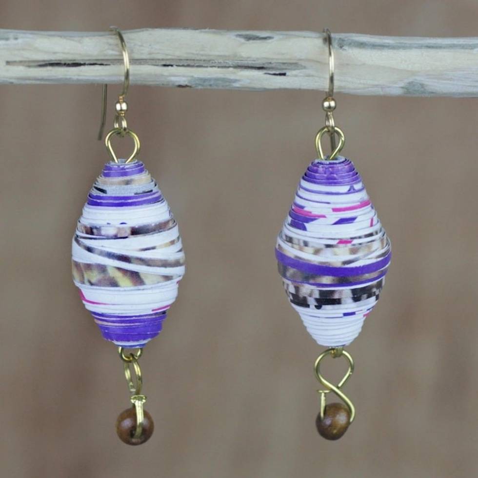 Handmade Recycled Paper and Wood Dangle Earrings from Ghana 'Majestic Abladei' Item ID: 2671803870