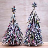 Handmade Recycled Paper Christmas Tree Figurines Pair 'News Tree' Item ID: 2669916297