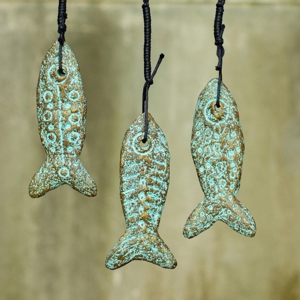 Handmade Recycled Paper Fish Buddhism Ornaments Set of 3 'Happiness Fish' Item ID: 2671801955
