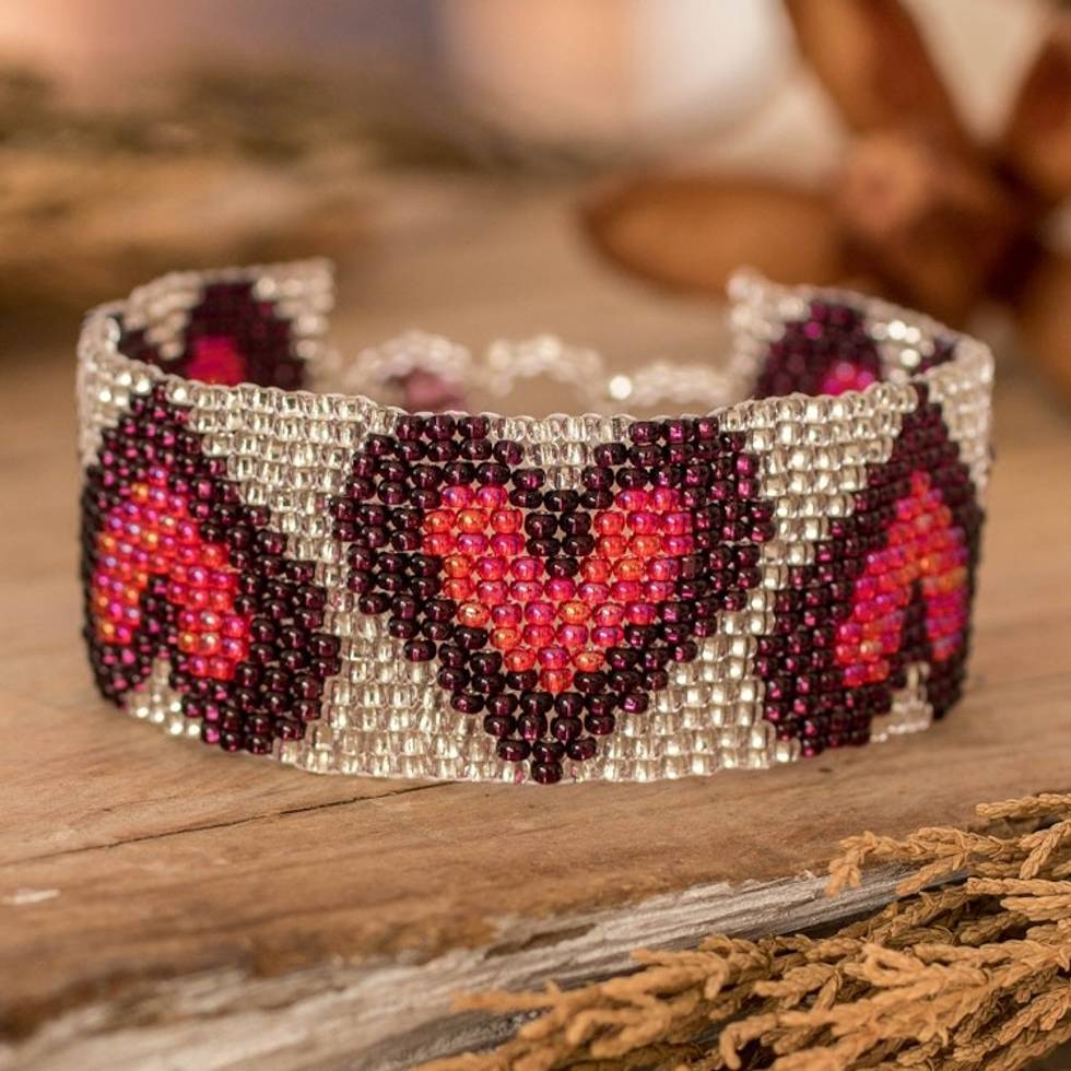 Handmade Red Purple Silver-Hued Heart-Themed Beaded Bracelet 'Purple Queen of Hearts' Item ID: 2671769000