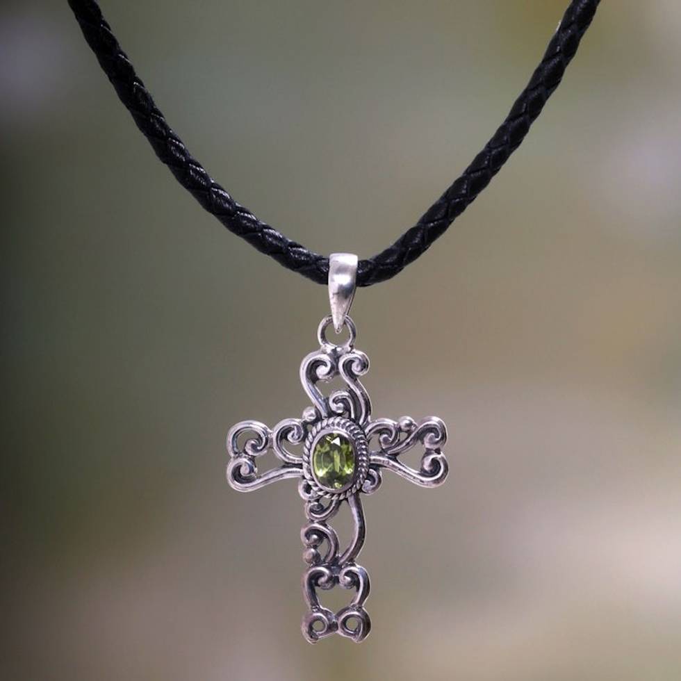 Handmade Religious Peridot Necklace 'Balinese Cross' Item ID: 2671698435