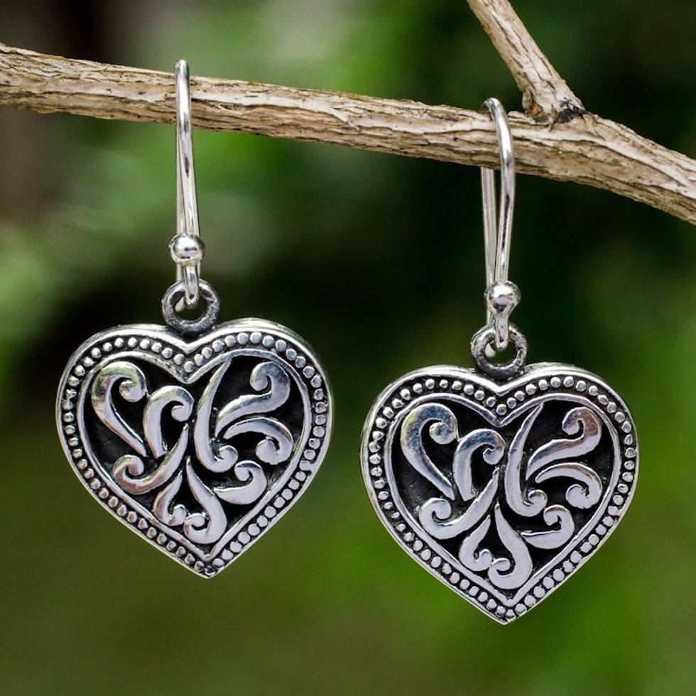 Handmade Romantic Sterling Silver Dangle Earrings 'Lighthearted Love' Item ID: 2669929387