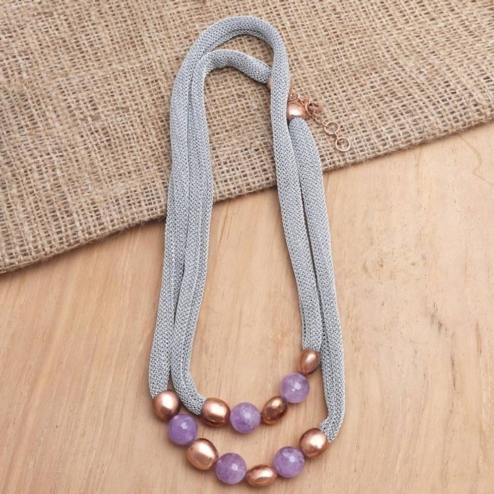 Handmade Rose Gold-Accented Amethyst Beaded Necklace 'Gold and Lavender' Item ID: 2671745910