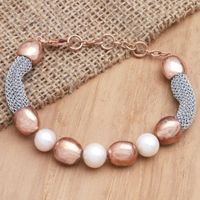 Handmade Rose Gold-Plated Cultured Pearl Beaded Bracelet 'Golden Waters' Item ID: 2671745049