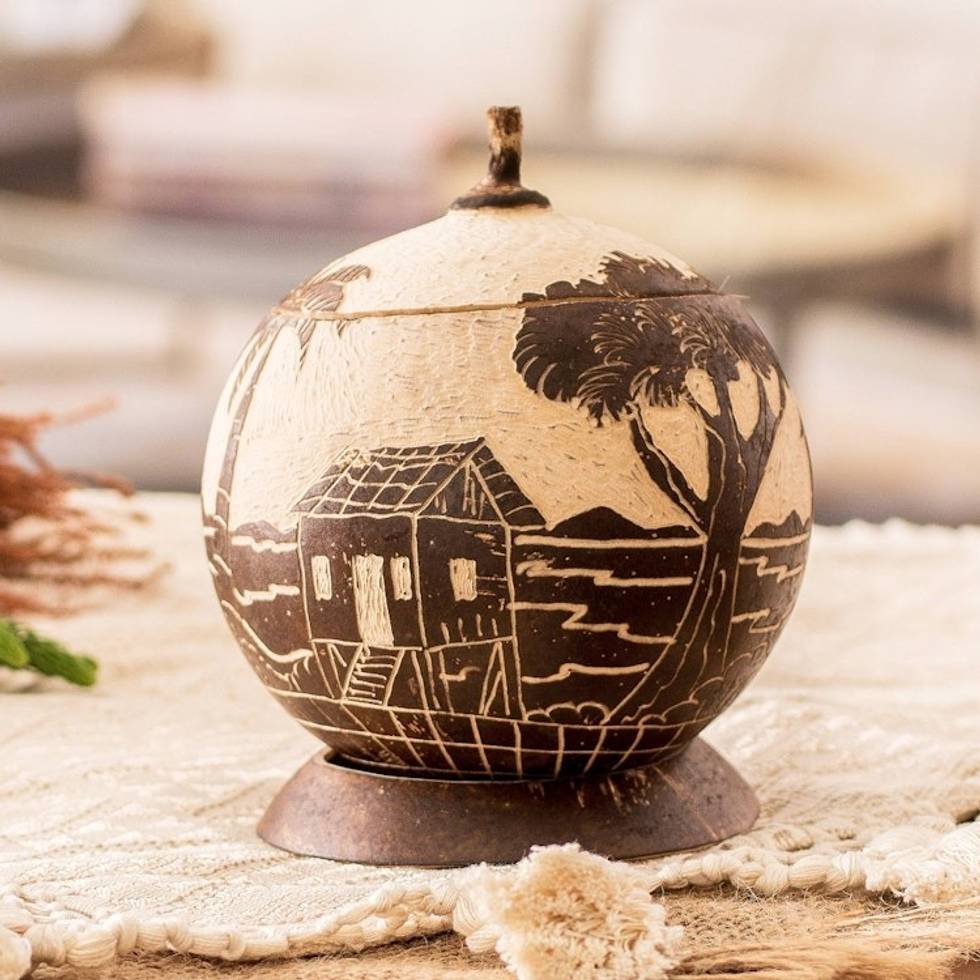 Handmade Round Dried Gourd Caribbean Town Decorative Accent 'Caribbean Landscape' Item ID: 2671771260