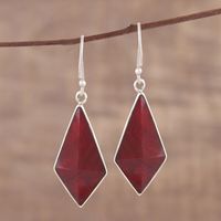 Handmade Ruby and Sterling Silver Dangle Earrings from India 'Crimson Kite' Item ID: 2669943187