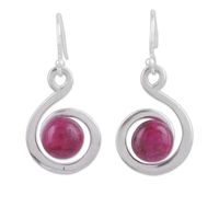 Handmade Ruby and Sterling Silver Dangle Earrings from India 'Crimson Swirl' Item ID: 2669923682