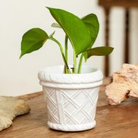 Handmade Rustic Ceramic Flower Pot in White from Mexico 'Vintage Diamonds' Item ID: 2671807462