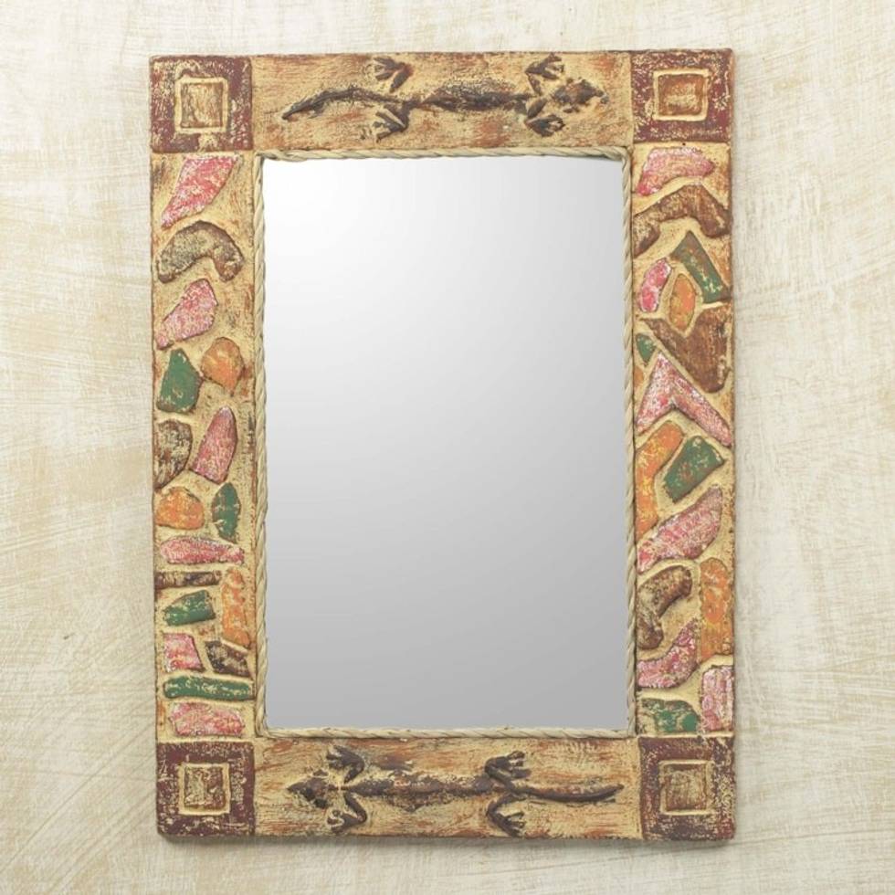 Handmade Rustic Wood Mirror 'African Lizards' Item ID: 2671807103