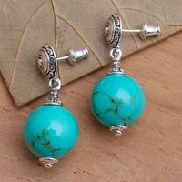 Handmade Silver Dangle Earrings with Reconstituted Turquoise 'A Perfect World' Item ID: 2676658936