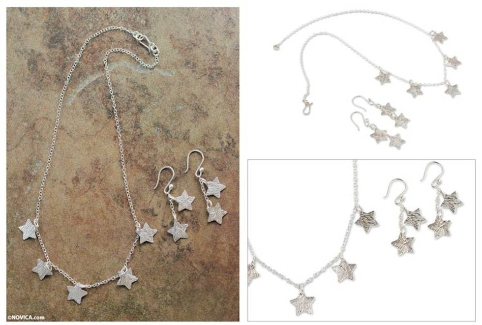 Handmade Silver Star Necklace and Earrings Set from Peru 'Tears of San Lorenzo' Item ID: 2671689453