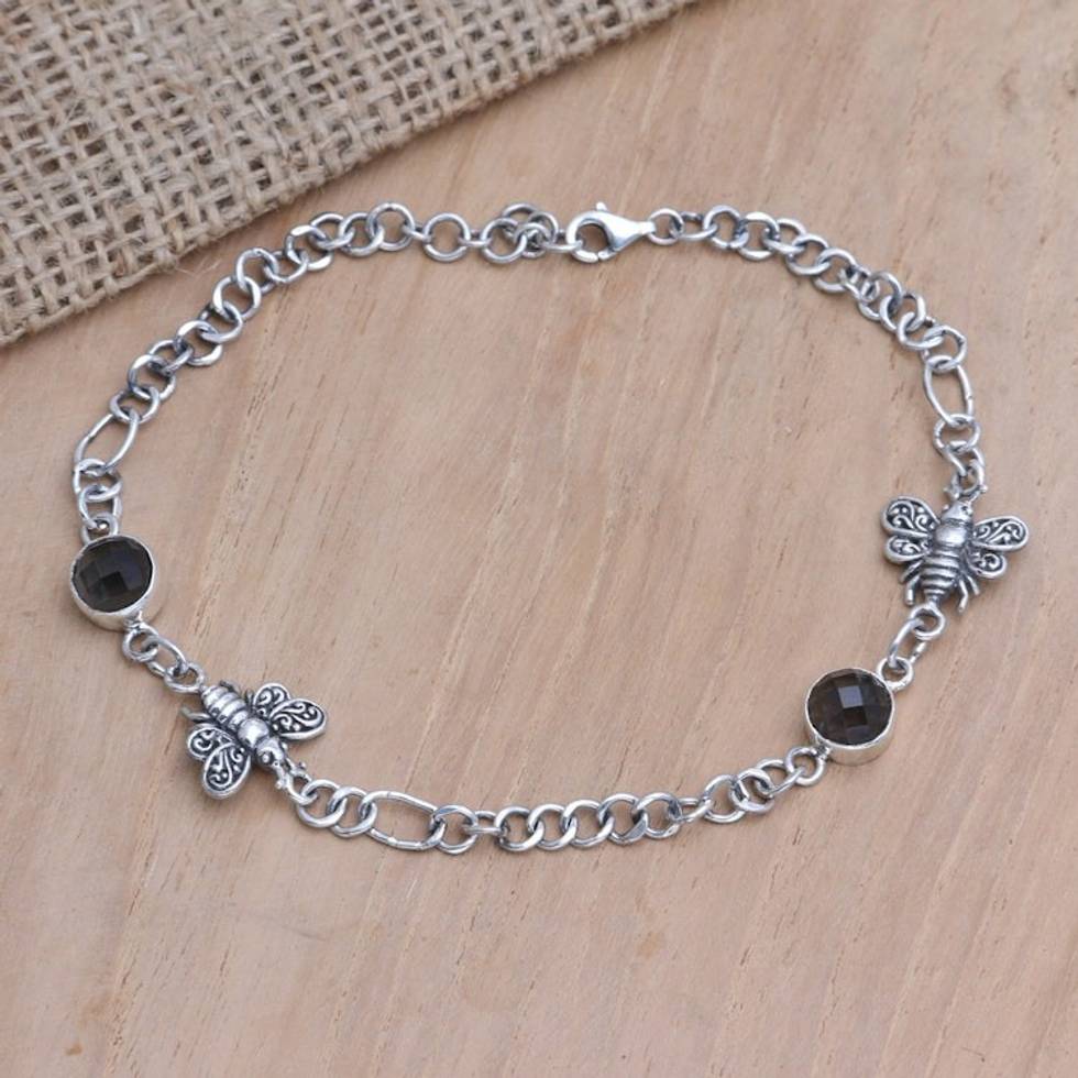 Handmade Smokey Quartz Anklet with Butterfly Motif 'Sweet Talk' Item ID: 2671748588