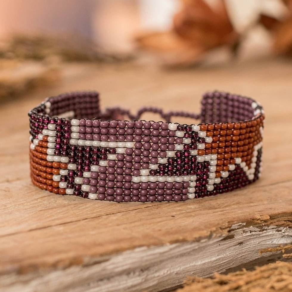 Handmade Star-Themed Purple Glass Beaded Wristband Bracelet 'Deluxe Blast' Item ID: 2671768991