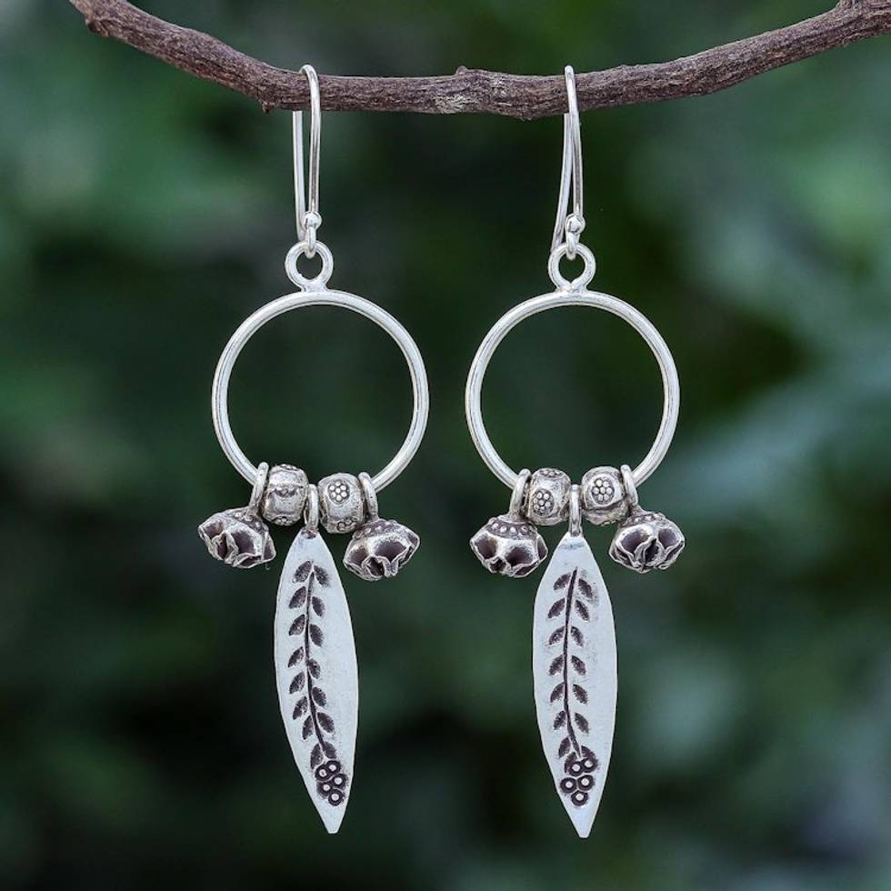 Handmade Sterling and Karen Silver Floral Dangle Earrings 'Tribal Tree' Item ID: 2671800555