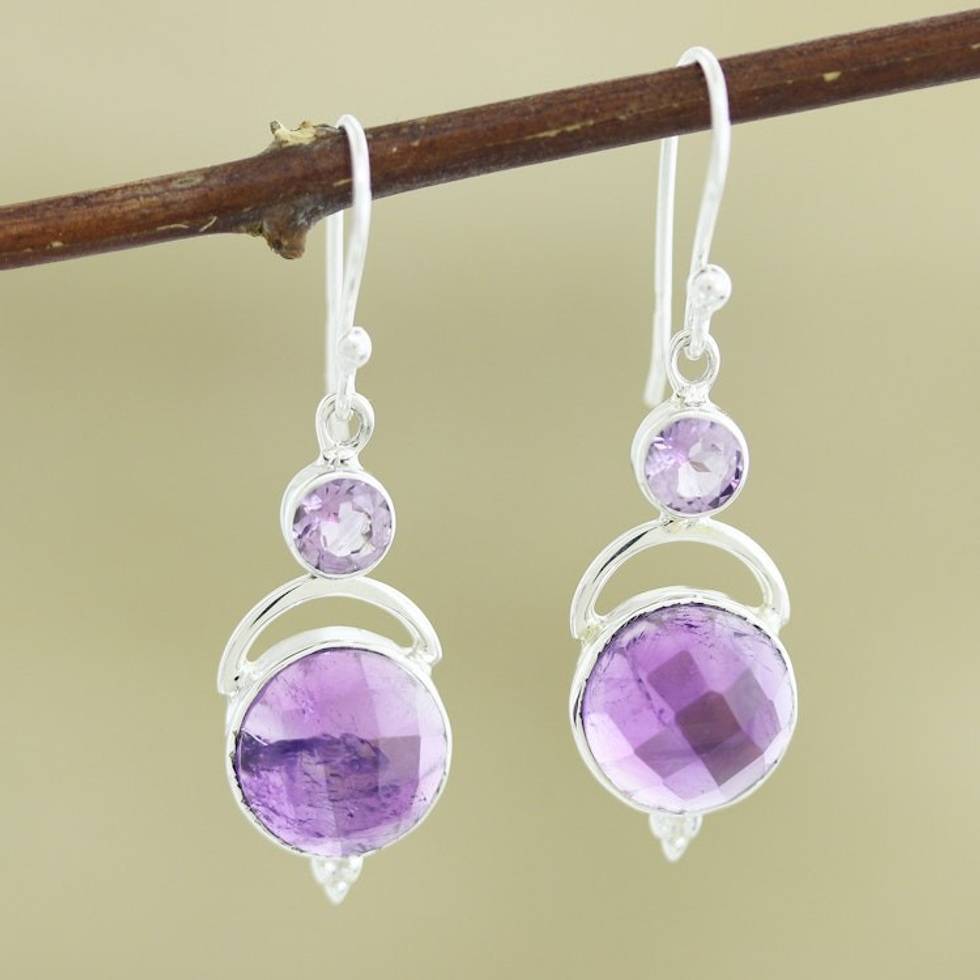 Handmade Sterling Silver Amethyst Dangle Earrings India 'Alluring Serenity in Lilac' Item ID: 2671622124