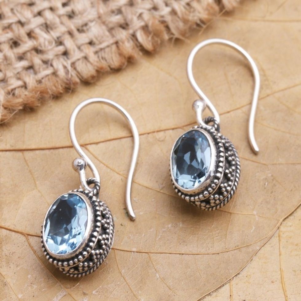 Handmade Sterling Silver and Blue Topaz Dangle Earrings 'Soft Music in Blue' Item ID: 2669921259