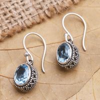I love Blue Topaz. This flower petal design surrounding the beautiful stones is even more lovely. The size of the stones stand out on these delecate earrings. Very pleased with this purchase.